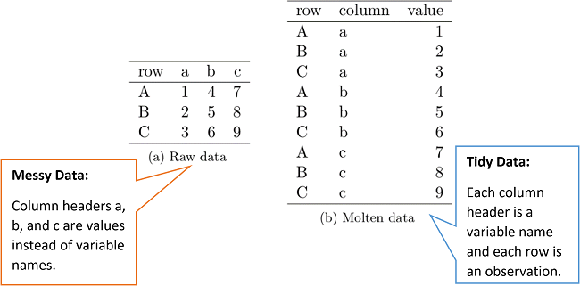 Once imported you might need to tidy the data. This really depends on what kind of data it is and we cover this later on in the course. However, putting all of your data into a consistent structure will be very beneficial when you have to do analysis on it — as you can treat it all in the same way. Grolemund and Wickham state that data is tidy when “each column is a variable, and each row is an observation”, we cover this more in next week in the [Tidying data] section.