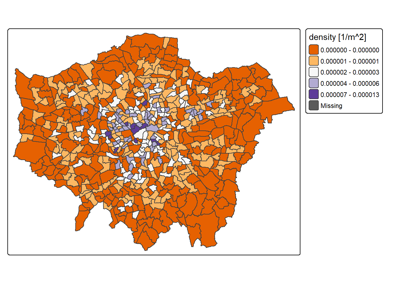 Are the values (in this case the density of pharmacies) similar (or dissimilar) across the wards of London.