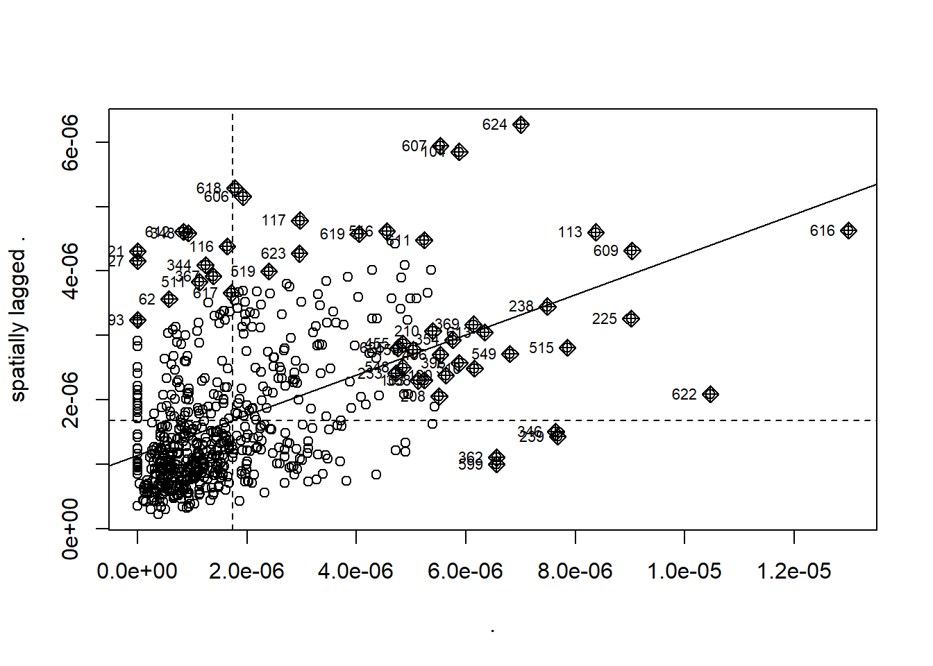 moran.plot(., lward_lw)